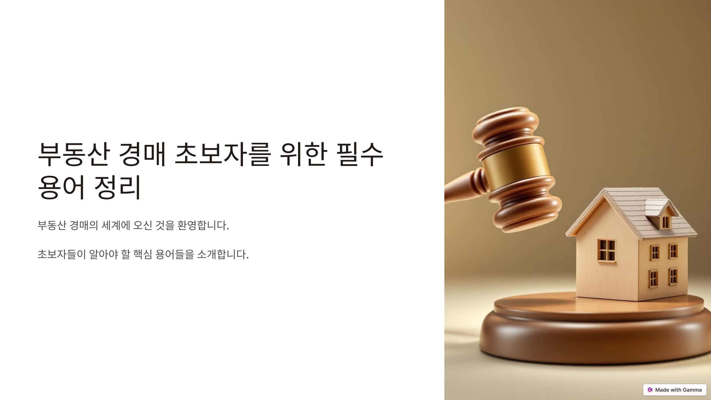 - 입찰: 경매에서 원하는 부동산에 대해 매수자가 직접 가격을 써내는 행위입니다.