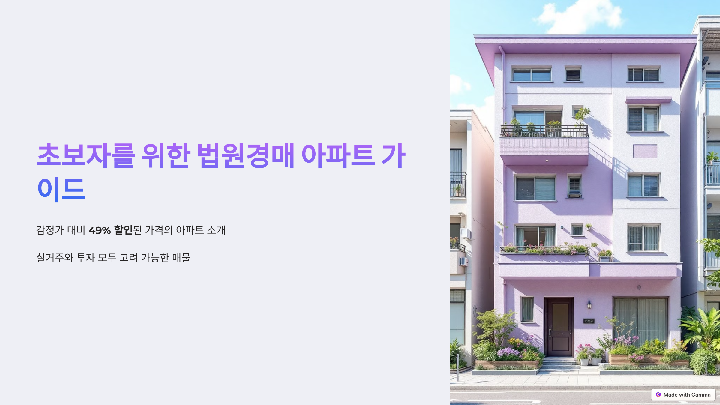 안녕하세요! 오늘은 초보자도 도전할 수 있는 법원경매 아파트를 소개해 드리려고 합니다. 경매라고 하면 어렵게 느껴질 수 있지만, 기본적인 정보만 알고 접근하면 좋은 기회를 잡을 수 있어요. 이번 물건은 감정가 대비 49% 할인된 가격으로 나왔기 때문에 실거주와 투자 모두 고려할 만한 매물입니다. 그럼 자세히 살펴볼까요? 😊